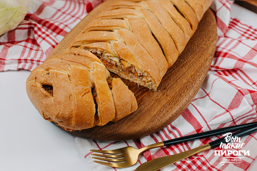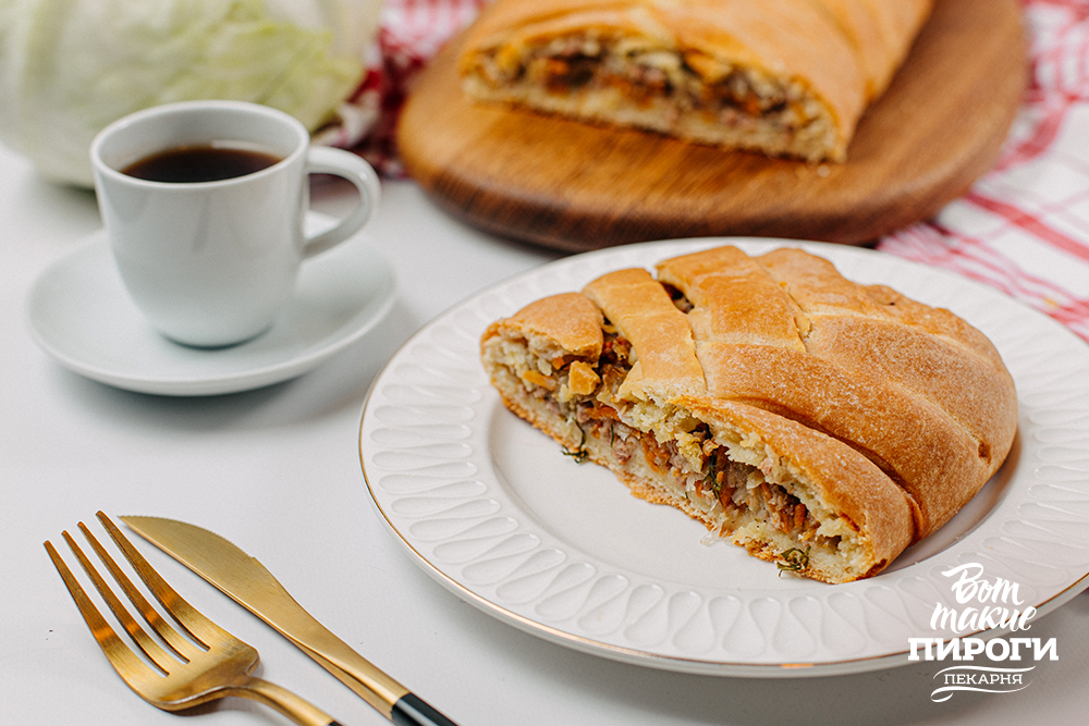 Кулебяка с мясным фаршем и капустой